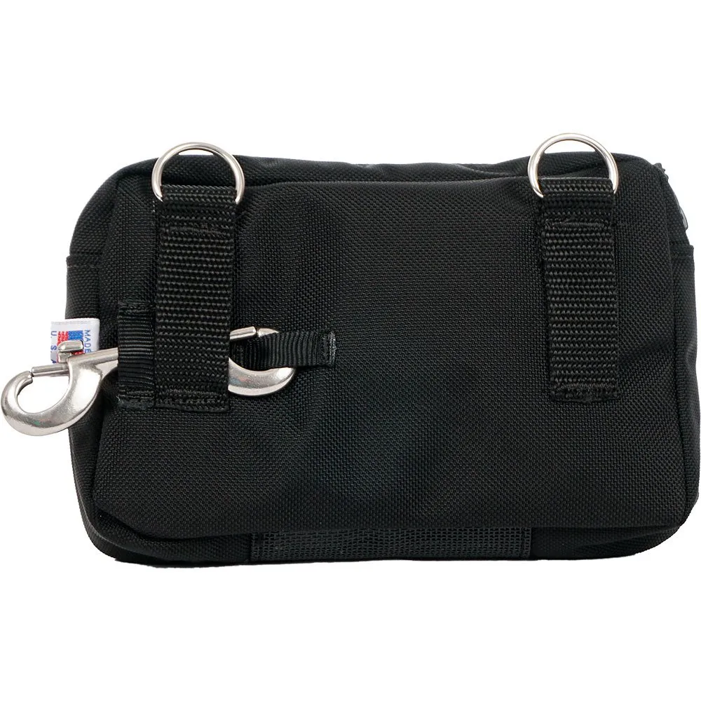The Bellows Horizontal Zip Pocket w/Daisy Chain also features 2 1-inch stainless D-rings for using the pocket as a bum pouch while sidemounting.