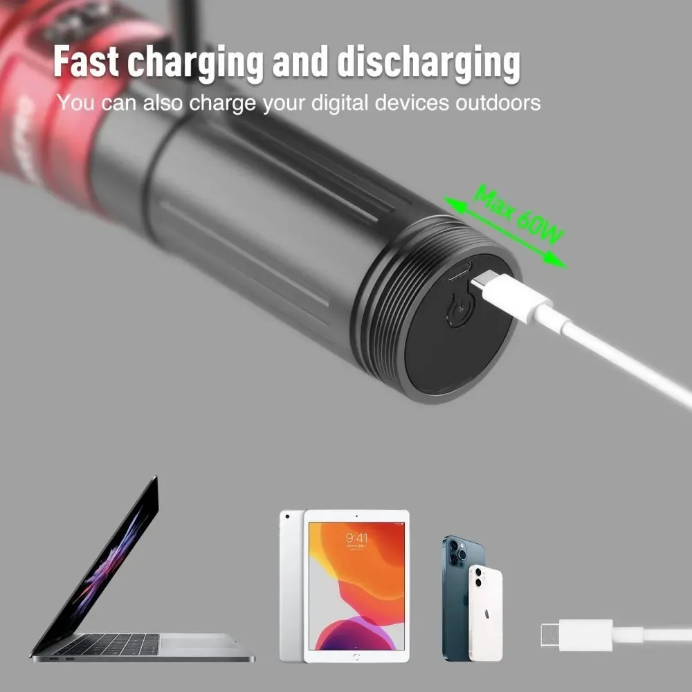 1200 Lumens + un mode rouge et Bleu (Fluo) + un mode boost (Wide+Spot).