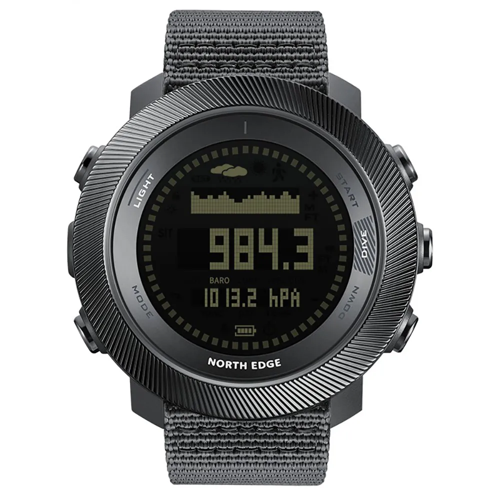 Built-in Altimeter, Barometer, Thermometer, and 3D Compass monitor weather changes, supporting outdoor adventures and survival. Durable 316L stainless steel bezel, magnetic charging, vibration alerts, and breathable nylon strap ensure comfort and reliability for daily wear.