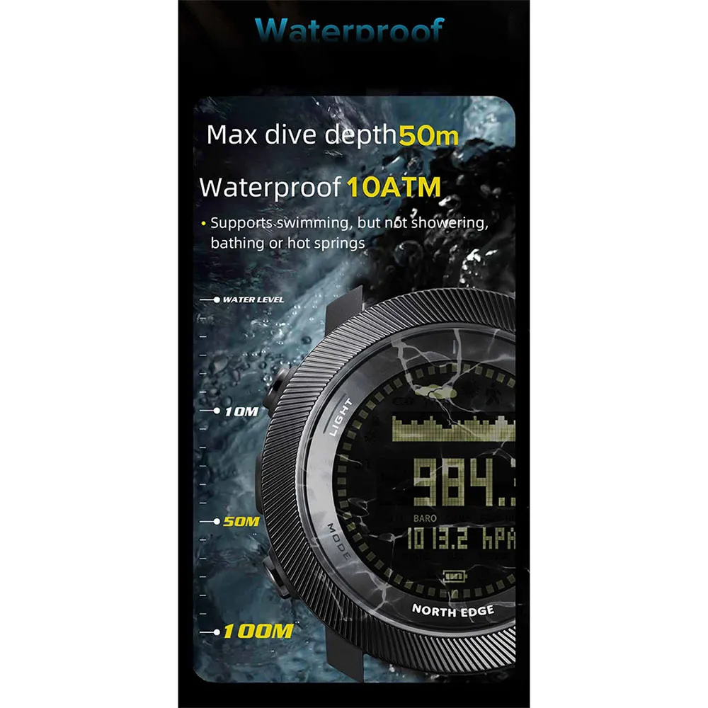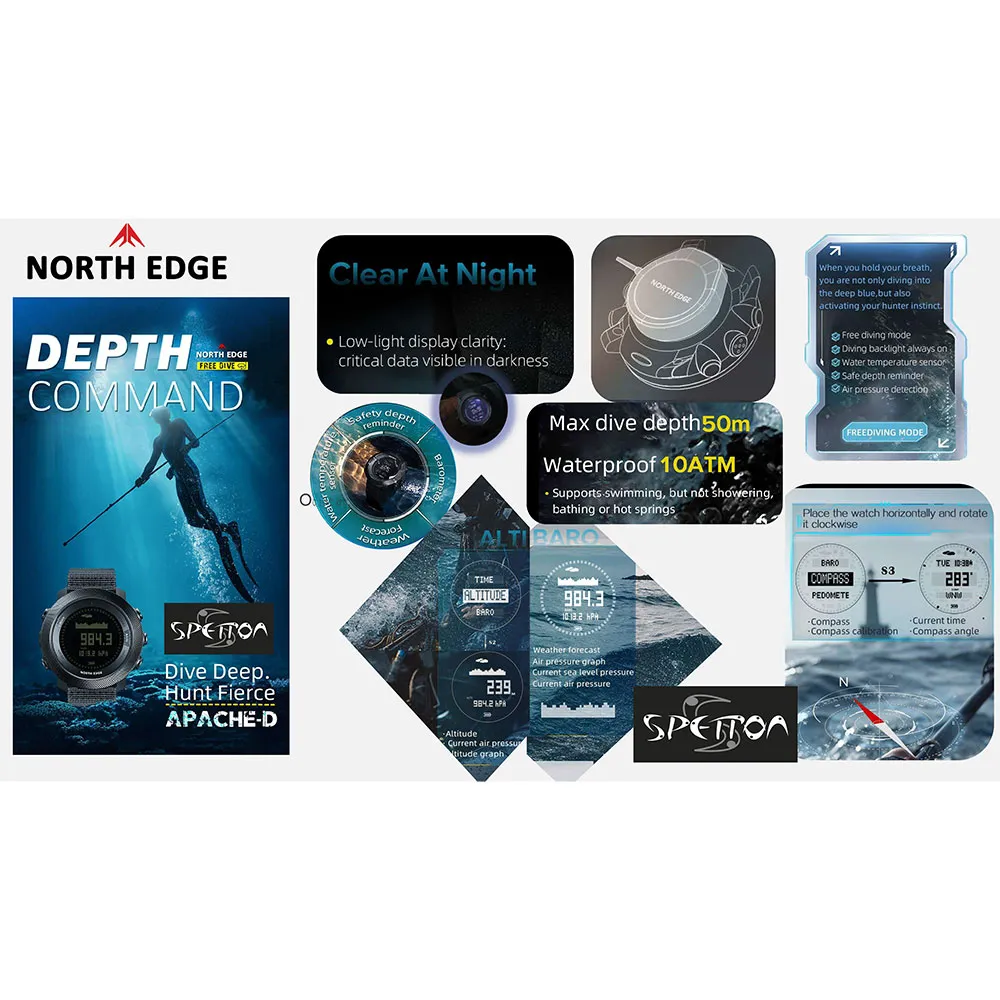 The North Edge APACHE-D is designed for divers and outdoor adventurers, combining professional diving performance with rugged outdoor functionality.