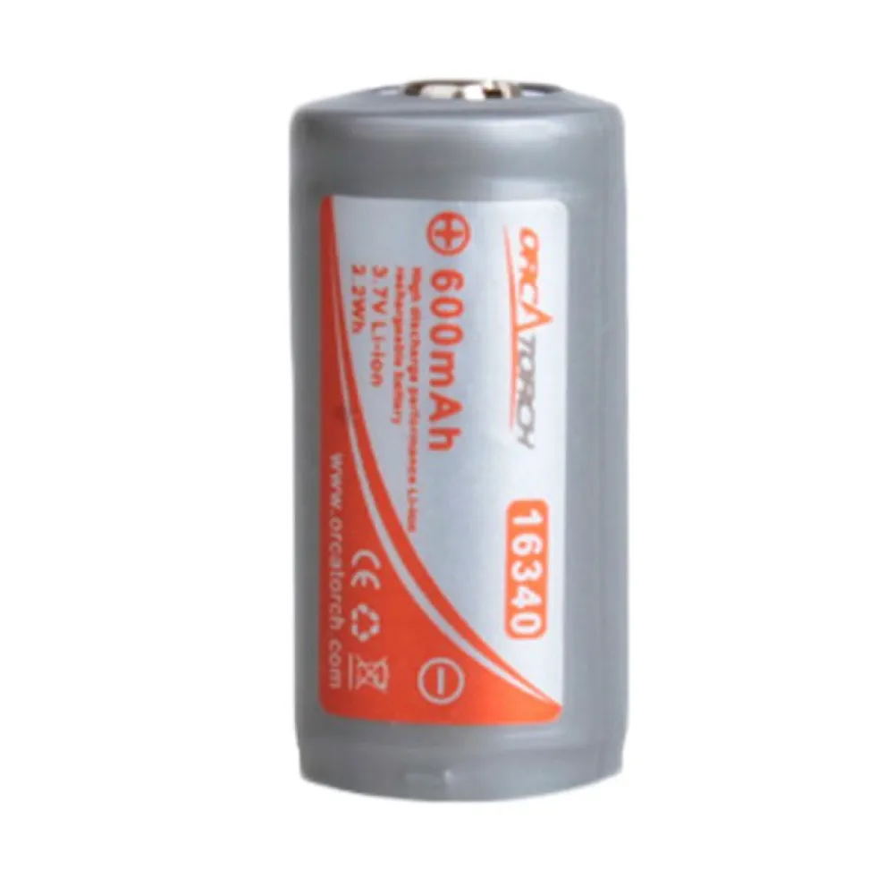 The OrcaTorch 16340 600mAh is a high performance li-ion battery, specially designed for high performance devices. It is safe and evviromently-friendly, high performance and high quality.One 16340 battery can be recharged for more than 500 times, the equivalent of 500 pcs non-chargeable batteries.