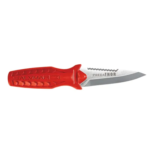 Elevate your underwater hunt with the SALVIMAR Predathor Knife, the essential companion for every spearfisher. Its compact, hydrodynamic design minimizes drag, while the formidable 420 stainless steel blade offers a dual edge—razor-sharp for precise cuts and serrated for tough ropes. Housed in a robust sheath with an intuitive quick-release system, it ensures instant, one-handed access when seconds count. Versatile mounting options for your arm, leg, or belt and an ergonomic grip provide ultimate control and reliability. This is the cutting tool for the serious spearfisher
