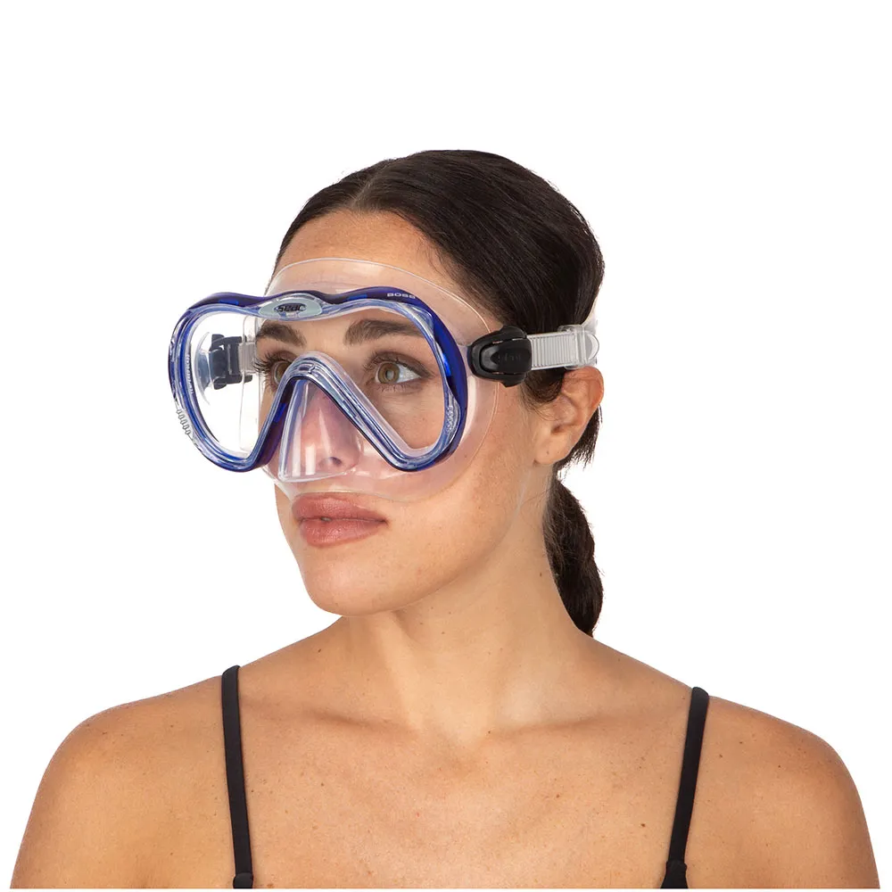 The Seac Boss snorkel mask is easy to put on and quick to adjust thanks to the practical button buckles.