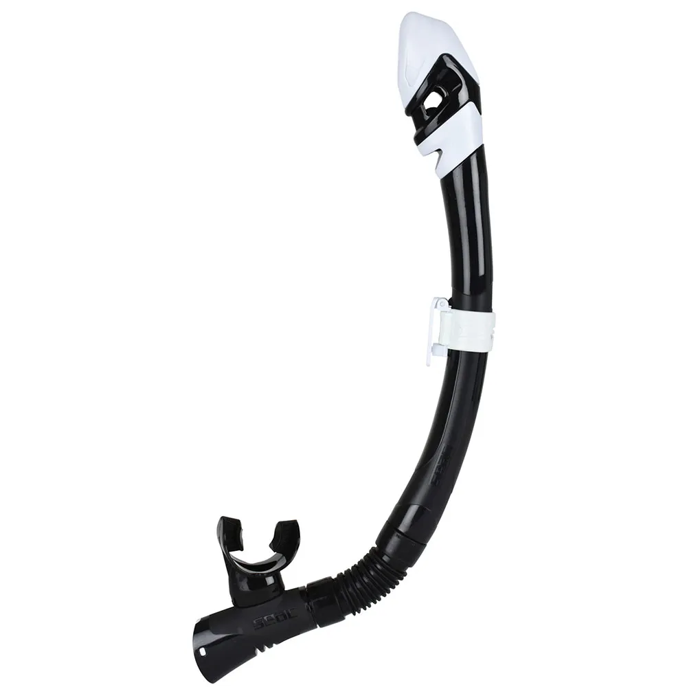 Seac Fast Dry snorkel has an ergonomic silicone mouthpiece that helps you to keep your jaws relaxed A dry top system helps prevent water from entering from the top of the snorkel This dry snorkel for adults also has a purge valve that allows you to expel any water.