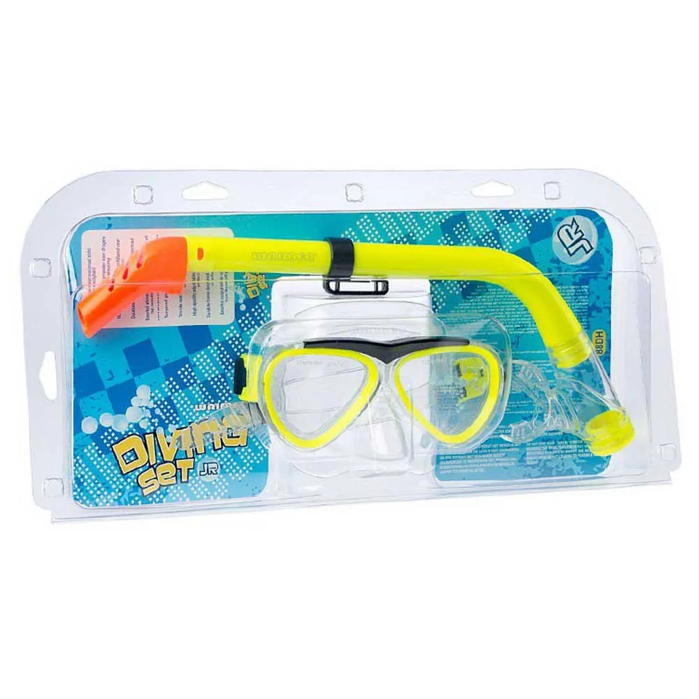 Spot the most beautiful fish on the reef or have tons of fun in the bath with this junior diving mask with snorkel by Waimea. The mask has a lens made of tempered and wonderfully clear glass. The double edges ensure a tight, waterproof fit. The mask also has an adjustable headband for a perfect fit on multiple sizes. The snorkel has a mouthpiece with a water-drainage valve so you can easily remove water from the mouthpiece / reservoir and the top is equipped with an orange outlet that prevents debris from entering your snorkel.