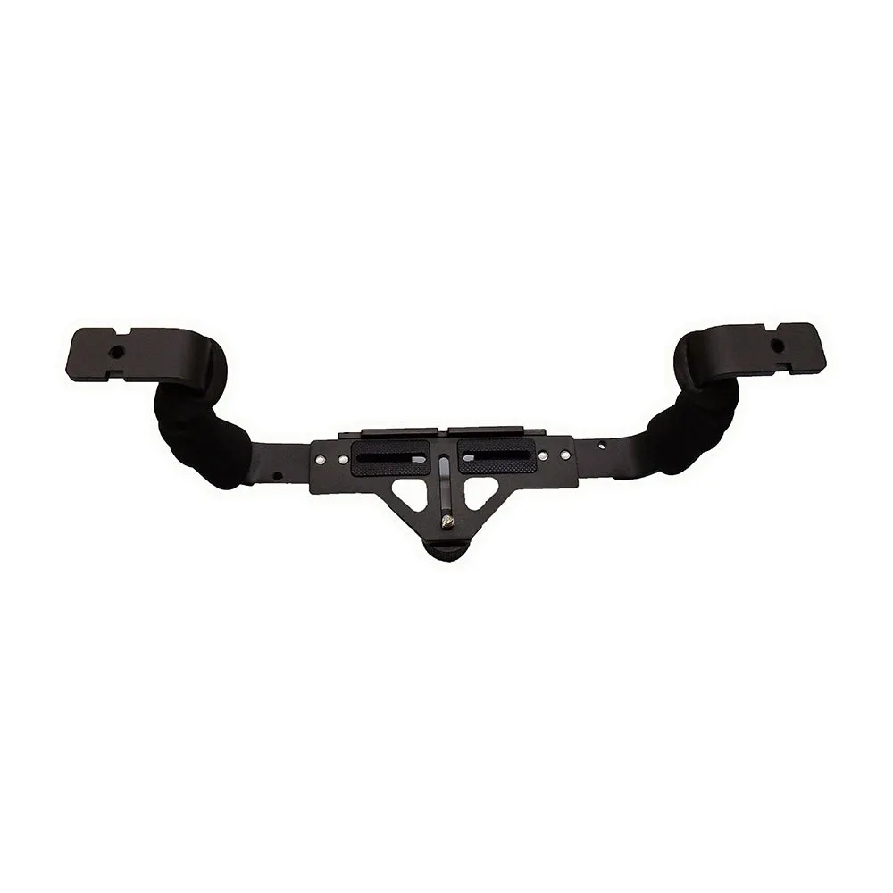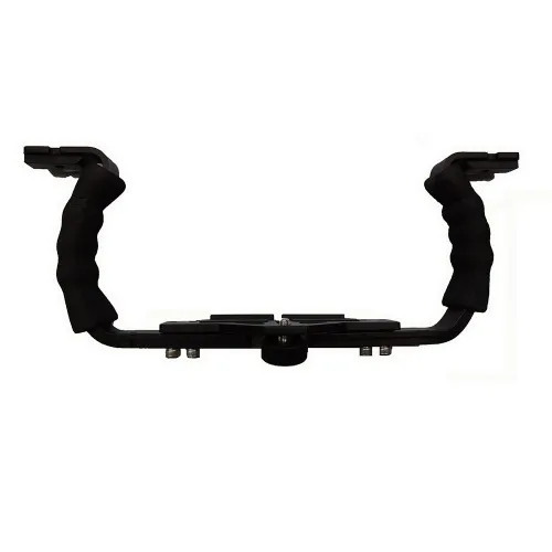 Base de fijación de cámara con goma y doble tornillo de ajuste para cada brazo.