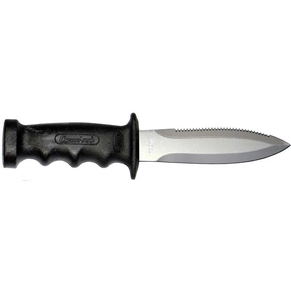 Excelente cuchillo Cressi, práctico, resistente y de acero inoxidable. Prácticamente lo que buscaba: un cuchillo de buceo fiable y robusto. Lo que hay que tener en cuenta es el anillo de seguridad que permite que el cuchillo no se escape a diferencia de otros con seguro a presión. La hoja es buena y afilada, el dentado es excelente.