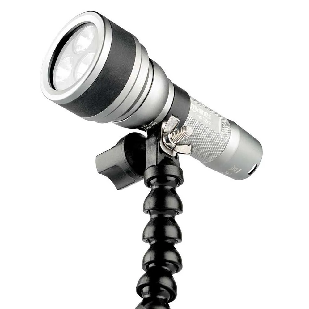 Transforma tu linterna de buceo en una luz de video de alto rendimiento con el Adaptador de Linterna MARES. Este robusto accesorio monta de forma segura tu linterna a un brazo de cámara flexible, dándote control total para eliminar sombras y capturar impresionantes imágenes submarinas brillantemente iluminadas sin el costo de un sistema de iluminación dedicado. Fabricado en acero inoxidable de grado marino con un agarre protector de goma, este adaptador ofrece una solución rápida, sin herramientas y fiable para una videografía brillante. Mejora tu equipo e ilumina tu próxima inmersión con el equipo en el que ya confías
