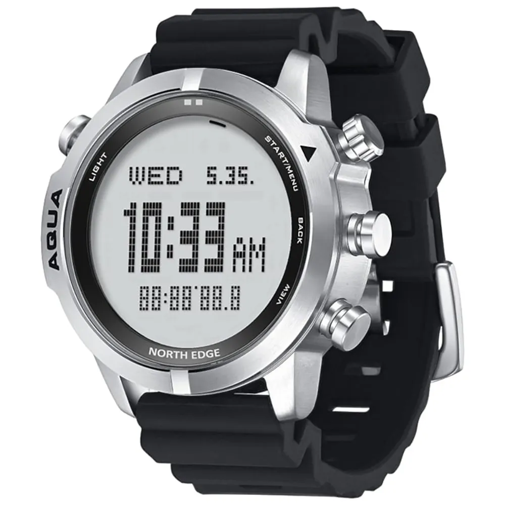 Te presentamos el North Edge Aqua, un reloj de buceo sumergible hasta 50 metros con barómetro, altímetro, brújula y termómetro.