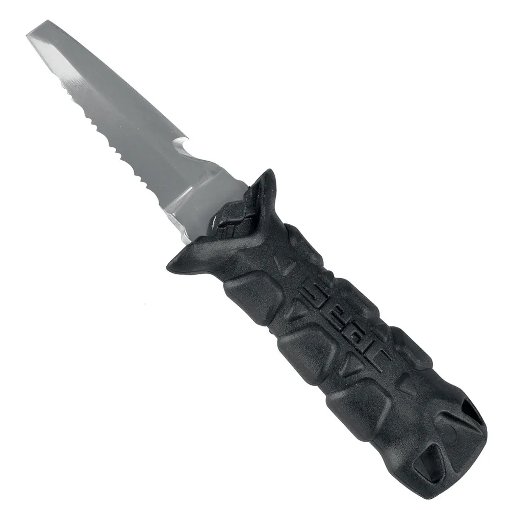 Este cuchillo de buceo de alta calidad es elogiado por su rendimiento. Cuenta con un montaje de manguera confiable, lo que permite una instalación fácil y segura en el equipo de buceo. Una excelente herramienta de corte para cualquier buceador que busque un cuchillo submarino confiable y fácil de sujetar.