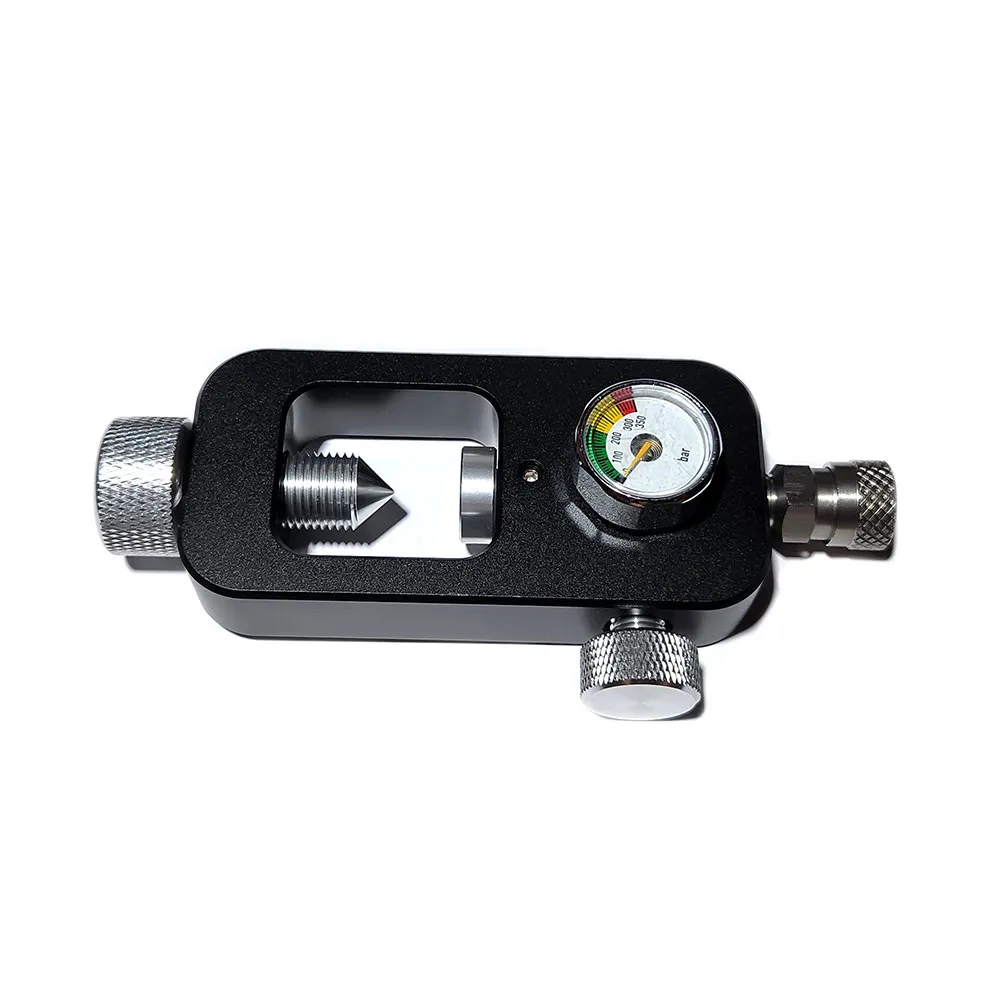 Este robusto adaptador totalmente metálico está diseñado para la carga conveniente de tu tanque Smaco desde cualquier tanque de buceo equipado con una salida INT (Yugo) estándar. El proceso es asombrosamente rápido y sencillo. Tiene un manómetro de alta precisión, que te brinda control y visibilidad completos sobre el proceso de llenado. ¡En un avance revolucionario para el equipo de buceo personal, cargarás tu botella en solo 8 segundos! Esta increíble velocidad significa menos tiempo preparándose en la cubierta y más tiempo explorando el vibrante mundo debajo de las olas. Ya sea que necesites un relleno rápido entre inmersiones o una recarga completa en un barco remoto, este adaptador lo hace posible en instantes.