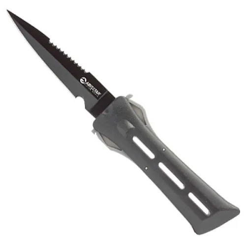 Veitsi on mahtava; se liukuu tupeen ja sieltä pois ja pysyy erittäin tukevasti paikallaan. Mutta sen mukana tulevat hihnat ovat kamalia; ostaisin useat samassa järjestyksessä ja varoisin ostamasta samoja ABYSSTARilta!