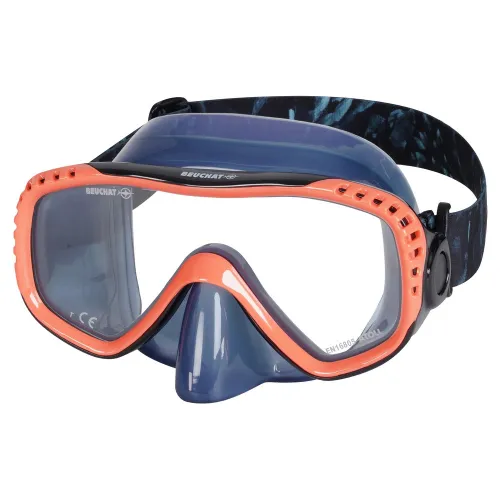 - Joustava tekstiilinen hihna, jossa on Beuchatin ainutlaatuinen Seaweed-kuvio, yhdistää mukavuuden ja käytännöllisyyden. Helppo säätää kääntyvien ja irrotettavien solkien ansiosta, se mahdollistaa nopean pukemisen ja riisumisen ilman hiusten vetämistä. Integroitu snorkkelilenkki varmistaa täydellisen yhteensopivuuden varusteiden kanssa.