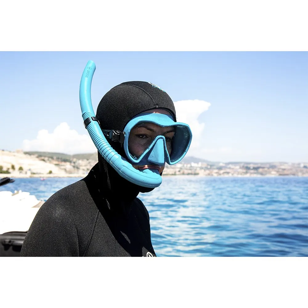 Maxlux S:n merkittävin etu on sen uskomaton näkökenttä. Kehyksetön, yksilinssinen rakenne tuo läpinäkyvän linssin lähemmäs silmiäsi, avaten henkeäsalpaavan panoraamanäkymän poikkeuksellisella kirkkaudella ja selkeydellä. Tämä muotoilu ei ainoastaan paranna visuaalista kokemustasi, vaan luo myös erittäin pienen sisätilavuuden. Pienen tilavuuden maski on helpompi tyhjentää vedestä, vaatii vähemmän vaivaa paineentasaamiseen laskeutumisen aikana ja tarjoaa vähemmän kelluvuutta, mikä tekee siitä suosikin vapaasukeltajien ja harppuunakalastajien keskuudessa.