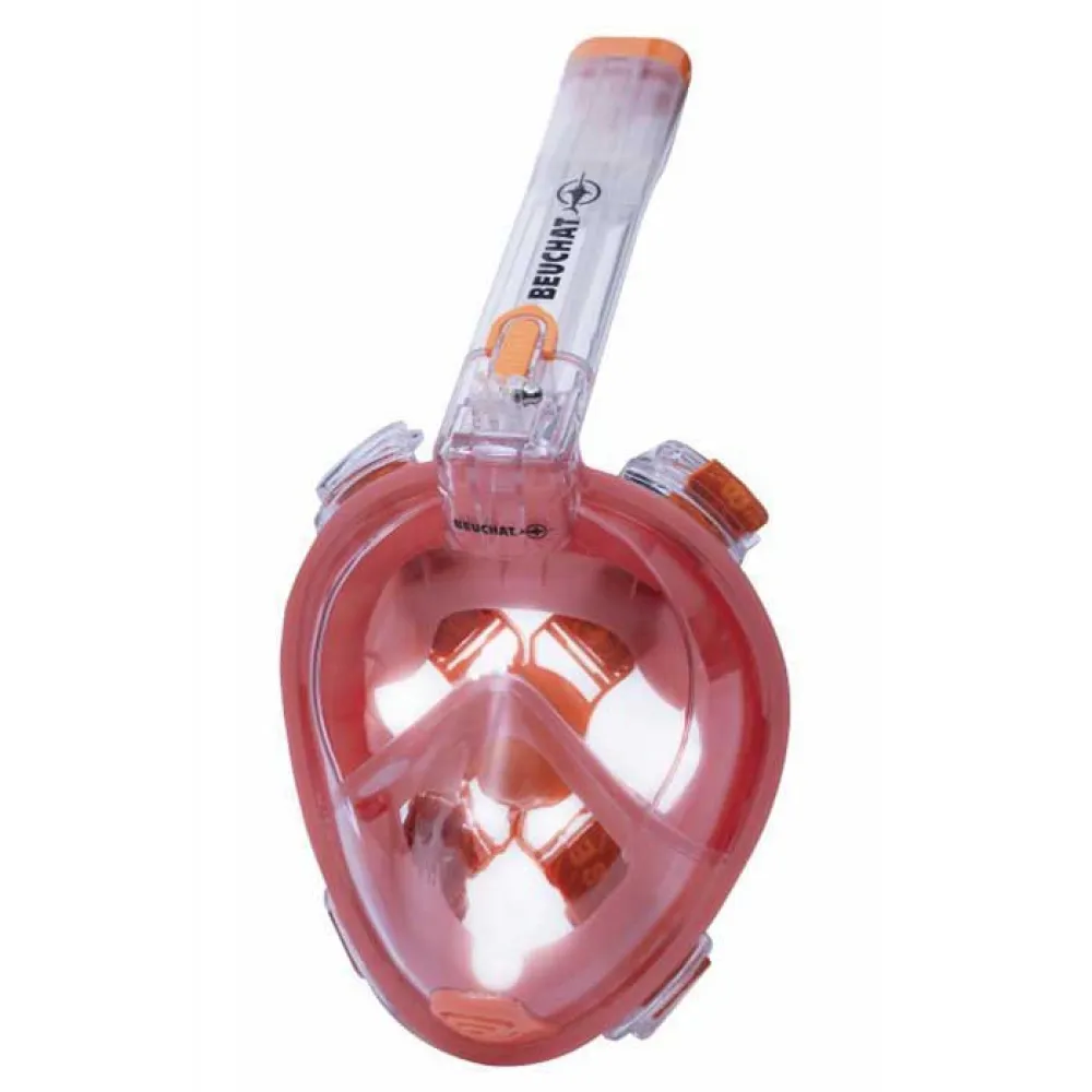 Tutustu vedenalaiseen maailmaan ennennäkemättömällä tavalla BEUCHAT Smile+ -kokokasvomaskin avulla! Hengitä luonnollisesti nenän tai suun kautta maksimaalisen mukavuuden vuoksi, aivan kuten maalla. Sen yksiosainen linssi tarjoaa upean, huurtumattoman 180 asteen panoraamanäkymän. Pehmeä hypoallergeeninen silikonireunus ja säädettävä, hiuksia takertumaton tekstiilihihna varmistavat täydellisen, vuotamattoman istuvuuden kaikille kasvoille. Varustettu hyvin näkyvällä, kokoontaitettavalla snorkkelilla helppoa pakkaamista varten, leuan tasolla olevalla tyhjennysventtiilillä ja GoPro-kiinnikkeellä tallentaaksesi seikkailusi jokaisen hetken