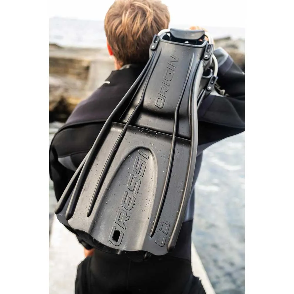 Säädettävällä jousihihnalla varustetut Origin LD -räpylät tarjoavat yksilöllisen istuvuuden monenlaisille jalkakoille. Tämä varmistaa maksimaalisen mukavuuden ja estää ei-toivotun liukumisen tai hankautumisen myös pitkien sukellusten aikana. Pikakiinnitteinen solkisysteemi mahdollistaa helpon pukemisen ja riisumisen myös paksuilla käsineillä.