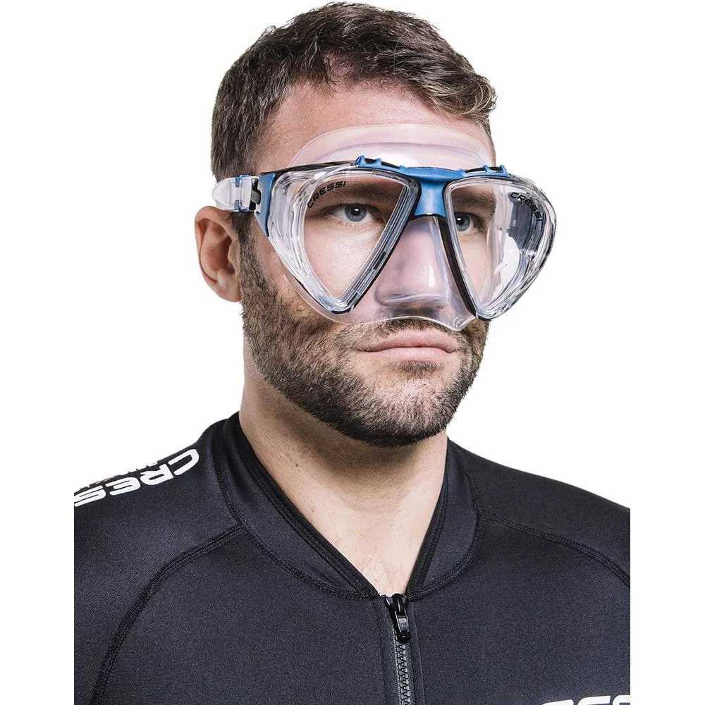 CRESSI Penta Plus -sukellumaski on laadukas ja kestävä sukellusmaski, joka on suunniteltu maksimaalisen mukavuuden ja näkyvyyden takaamiseksi veden alla. Transparent blue -väri antaa maskille tyylikkään ja modernin ilmeen, mutta mahdollistaa silti erinomaisen sivunäön. Maskissa on pehmeä silikonihuppu ja säädettävät hihnat, jotka takaavat turvallisen ja mukavan istuvuuden.