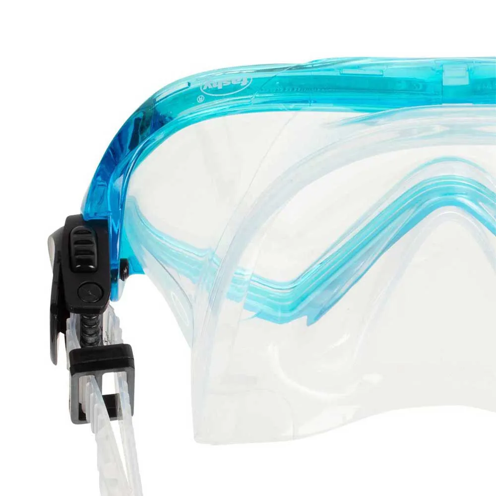 Täydellisen istuvuuden saavuttaminen ei ole koskaan ollut helpompaa. FASHY Explorerissa on intuitiivinen ja helposti säädettävä sivukiinnitysjärjestelmä. Tämä mahdollistaa nopeat, lennosta tehtävät mikrosäädöt päähihnaan, jopa hanskat kädessä. Voit vaivattomasti kiristää tai löysätä maskia saadaksesi räätälöidyn, turvallisen istuvuuden sekunneissa, varmistaen, että se pysyy mukavasti paikallaan koko sukelluksen tai snorklauksen ajan.
