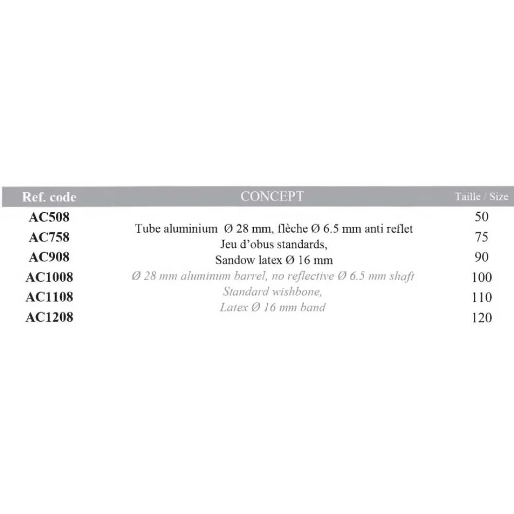 Intuitiivinen ja käyttäjäystävällinen: Klassisen muotoilunsa, mukaan lukien vakiohaarusluut ja ergonominen ote, ansiosta Concept on helppo ladata, tähdätä ja ampua, mikä tekee siitä ihanteellisen valinnan kaikille taitotasoille. Tekniset tiedot: