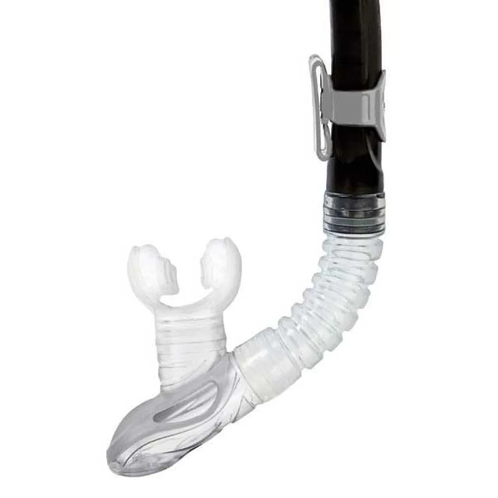 Ergonominen suukappale, joka on valmistettu hypoallergeenisesta silikonista, tarjoaa mukavan ja turvallisen istuvuuden, vähentäen leukojen väsymistä ja ehkäisten ärsytystä jopa pitkäaikaisessa käytössä. Sen muotoiltu muoto mukautuu luonnollisesti suuhun varmistaen vesitiiviin tiivistyksen ja minimoiden vuotojen riskin. Suuri putki mahdollistaa runsaan ilmavirran, tarjoten vaivatonta hengitystä ja vähentäen vastusta, mikä on ratkaisevan tärkeää syvissä sukelluksissa ja vaativissa snorklausretkissä.