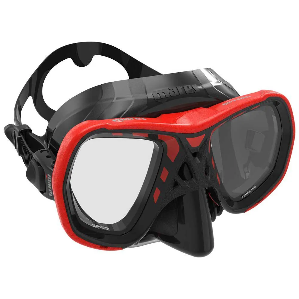 Koe poikkeuksellinen kirkkaus MARES Spyder -maskilla. Sen pienitilavuuksinen, kaksilinssinen rakenne tuo vedenalaisen maailman lähemmäs tarjoten laajan, esteettömän näkökentän. Koe vertaansa vailla oleva mukavuus erittäin pehmeän silikonihameen ansiosta, joka luo täydellisen tiivistyksen ja poistaa kasvojen väsymyksen. Innovatiivisessa muotoilussa on pehmeä, taipuisa nenäsilta ja joustavat sivukiilat, jotka tekevät paineentasaamisesta vaivatonta, jopa käsineet kädessä. Täydellinen sukellukseen, snorklaukseen ja vapaasukellukseen, Spyder on korkean suorituskyvyn ikkunasi vesimaailmaan