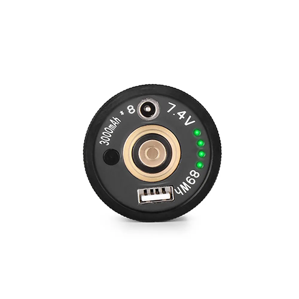 Siinä on yksi OrcaTorch 21700 5000 mAh ladattava akku, jossa on USB Type-C -latausportti.