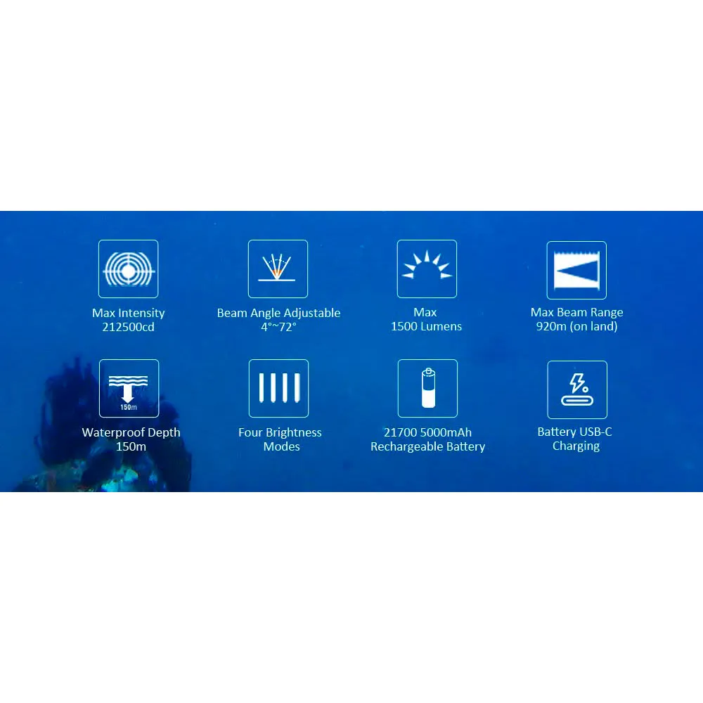 Erittäin voimakas, yläsäädettävä säde, en malta odottaa, että pääsen kokeilemaan sitä sukeltamisessa, hyvä koettu laatu, ihanteellisesti tarjoaa toisen akun jatkaaksesi sukelluksia ilman rajoituksia