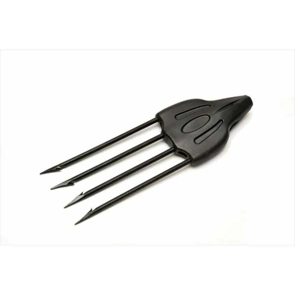 Tämän harppuunan neljä asiantuntevasti hiottua piikkiä on sijoitettu strategisesti maksimaalisen pitovoiman saavuttamiseksi. Niiden terävä, väkäspäinen muotoilu varmistaa turvallisen otteen kohteestasi, minimoiden kalan menetyksen riskin ja maksimoiden metsästysmenestyksesi. Piikkien tarkka kulma ja väli on optimoitu sekä tunkeutumiseen että pitovoimaan, mikä tarjoaa luottavaisen ja tehokkaan spearfishing-kokemuksen.