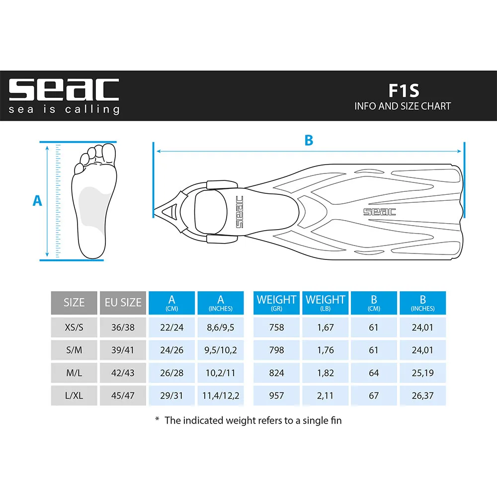 Koe ammattilaistasoinen suorituskyky SEAC F1 S -sukellusräpylöillä. Nämä modernit, kevyet räpylät tarjoavat poikkeuksellisen suorituskyky-ponnistus-suhteen. Innovatiivinen kaksimateriaalinen lapa, joka on valmistettu kestävästä teknopolymeeristä, ohjaa vettä tehokkaasti voimakkaan potkun aikaansaamiseksi. Mullistava Sling Strap -järjestelmä sisältää syvyyttä kompensoivat joustohihnat turvallisen, jatkuvan pidon takaamiseksi, kun taas suuret sormilenkit mahdollistavat vaivattoman pukemisen ja riisumisen ilman säätötarvetta. Mukava, vakauttava jalkatasku täydentää tämän korkean suorituskyvyn paketin jokaiseen sukellukseen