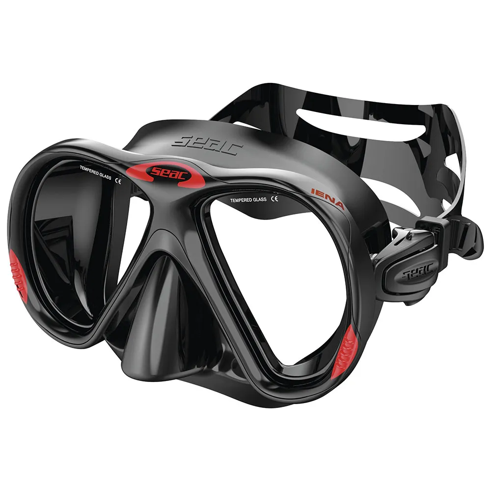 Seac Iena -snorklausmaski on täydellinen kumppani vedenalaisiin seikkailuihin. Kaksi symmetristä linssiä iskunkestävästä polykarbonaatista. Saatavana eri väreissä. Nopea ja helppo säätää maskin sivuilla olevien painonappisoljien ansiosta. Seac Iena on täydellinen snorklausmaski rannalle.
