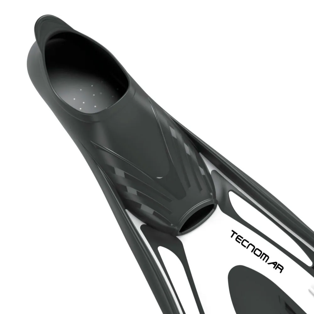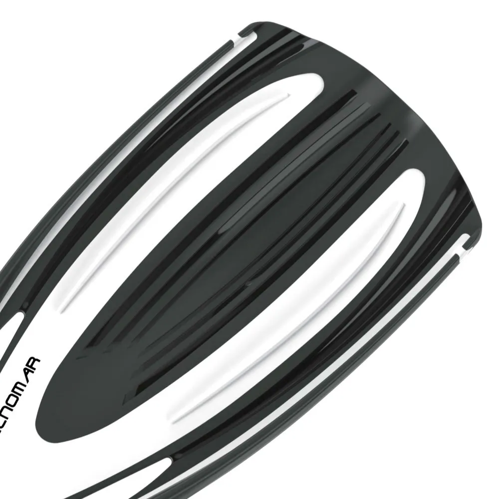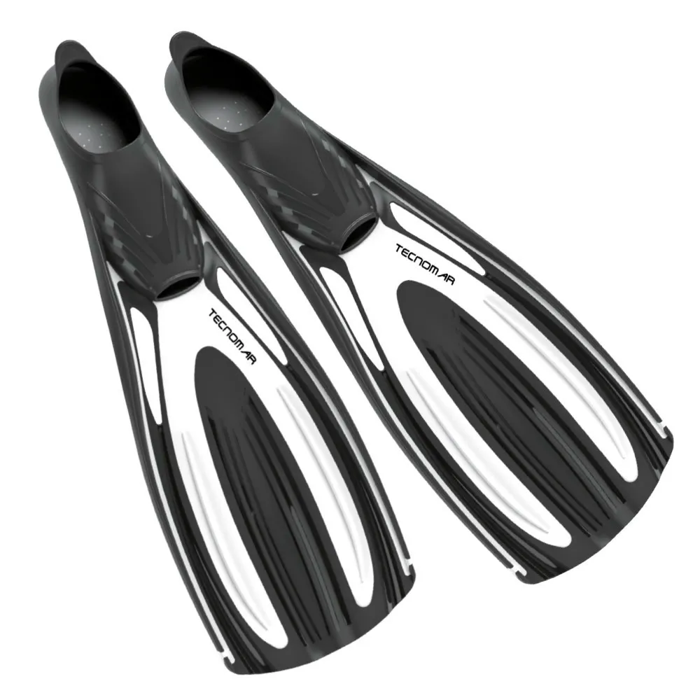 Nämä räpylät eivät ole vain toimivia, vaan myös tyylikkäitä sulavalinjaisen ja modernin muotoilunsa ansiosta. Musta väri lisää ripauksen hienostuneisuutta, kun taas TECNOMAR-logo lisää brändin tunnettuutta. Nämä räpylät tekevät varmasti vaikutuksen seuraavalla sukellusretkelläsi.