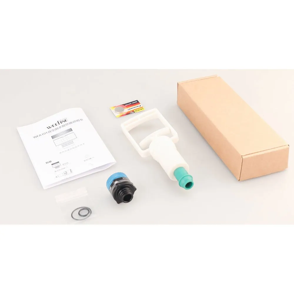 Sukella luottavaisin mielin! Weefine-tyhjiöjärjestelmä on välttämätön sukellusta edeltävä tarkistus täydellisesti tiivistetylle vedenalaiselle kamerakotelolle. Tämä sarja, joka sisältää kestävän anodisoidun alumiiniventtiilin ja helppokäyttöisen tyhjiöpumpun, antaa sinun varmistaa kotelosi tiiviyden pinnalla. Poista yksinkertaisesti ilma, kunnes LED-merkkivalo muuttuu vihreäksi. Jos se pysyy vihreänä 10 minuuttia, arvokas varusteesi on turvassa ja valmis jopa 100 metrin syvyyksiin. Varmista täydellinen istuvuus valitsemalla oikea sovitin (myydään erikseen) M14- tai M16-kotelollesi