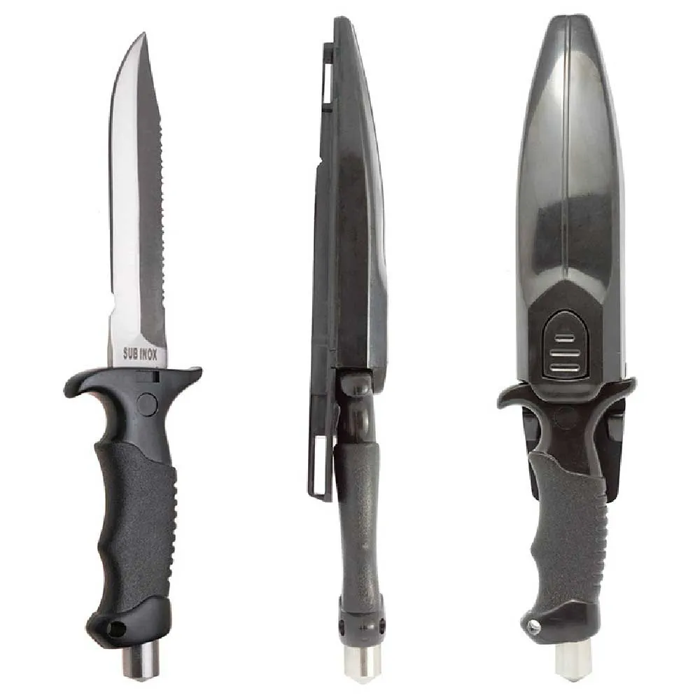 Couteau de sécurité subaquatique Lama 14.5 cm en acier inoxydable avec marteau.