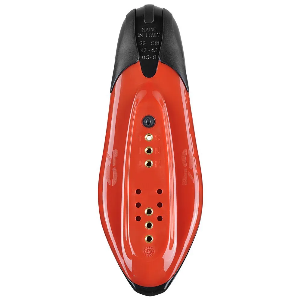 La matière supérieure est plus souple (65 ShA) pour les tailles 36/37, 38/39 et 40/41 et légèrement plus rigide (74 ShA) pour les tailles 41/42, 42/43, 43/44 et 44/45 pour garantir le meilleur confort et performances.