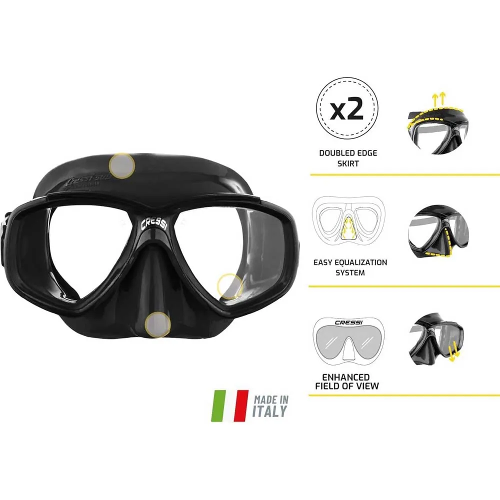 Super bon masque fabriqué en Italie de la plus haute qualité comme d'habitude de Cressi à un prix incroyable, complètement satisfait. Faible volume parfait pour la plongée libre