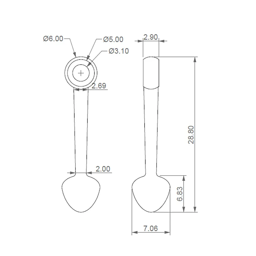 Usinage de haute précision en une seule pièce d´acier AISI 304. La structure monobloc empêche l´érosion et les éventuelles coupures ou petites déchirures à l´intérieur de la canule qui peuvent endommager le sandow.