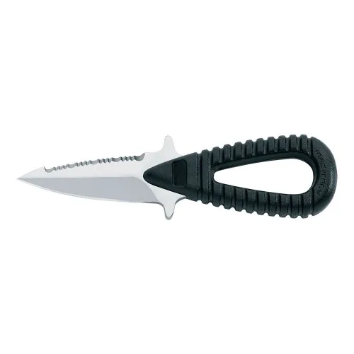 Ce couteau de plongée compact et léger est apprécié pour son tranchant exceptionnel, sa solidité et sa robustesse. Son design fonctionnel comprend un petit manche pratique avec un trou pour le doigt, assurant une prise en main sûre. Le petit couteau et son étui sont confortables à porter à la ceinture ou au bras, ce qui en fait un outil idéal et facile à entretenir pour la chasse sous-marine et le snorkeling. Les clients le trouvent petit, robuste et très fonctionnel.