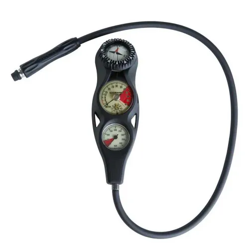 Manomètre Submersible (SPG) : Indique la pression d´air restante dans votre bouteille, vous permettant de surveiller votre alimentation en air et de planifier vos plongées en conséquence.