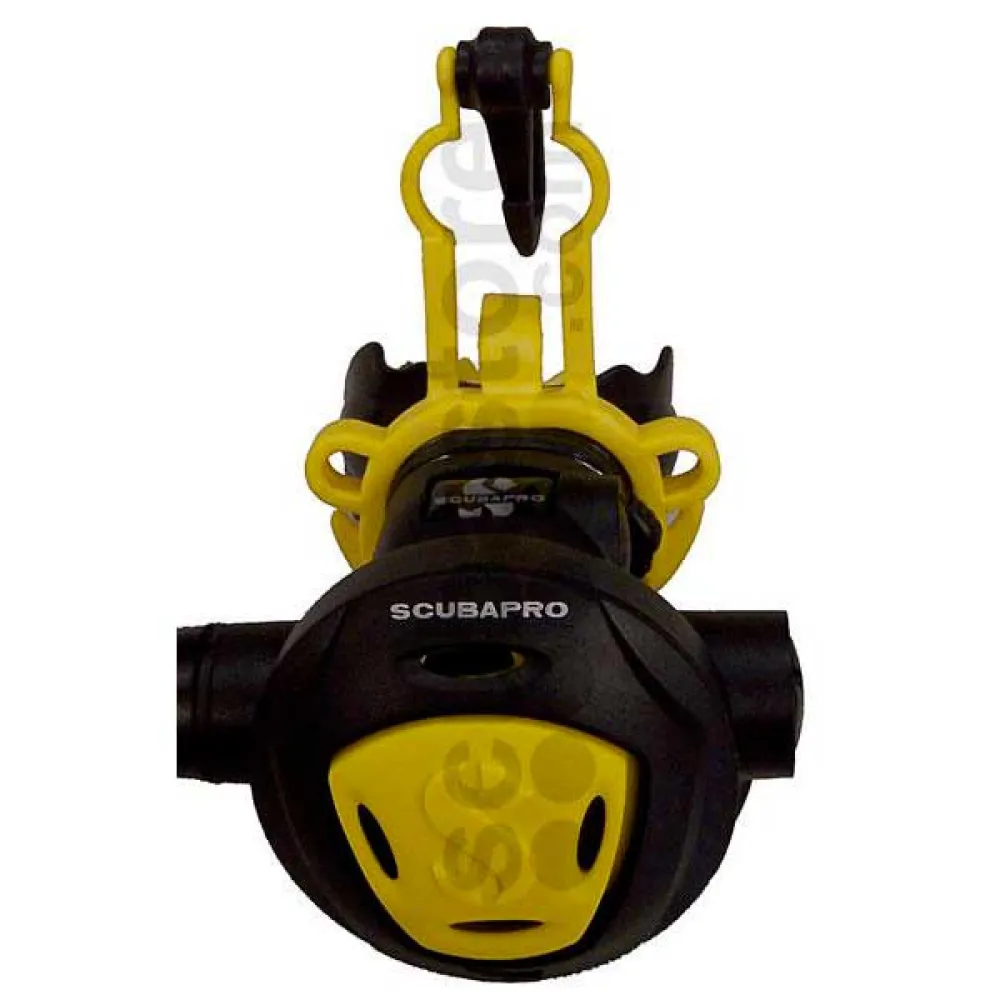 Si vous n'avez pas de mousqueton au niveau de la pieuvre, voici un bon support qui empêche également tout débris de pénétrer dans la zone de la valve et de la membrane du régulateur. Un petit cintre en plastique, difficile à déconnecter si vous devez retirer votre équipement de plongée avant de monter sur un bateau, surtout si vous passez le tuyau sous votre aisselle, mais sinon un design agréable, léger et compact.