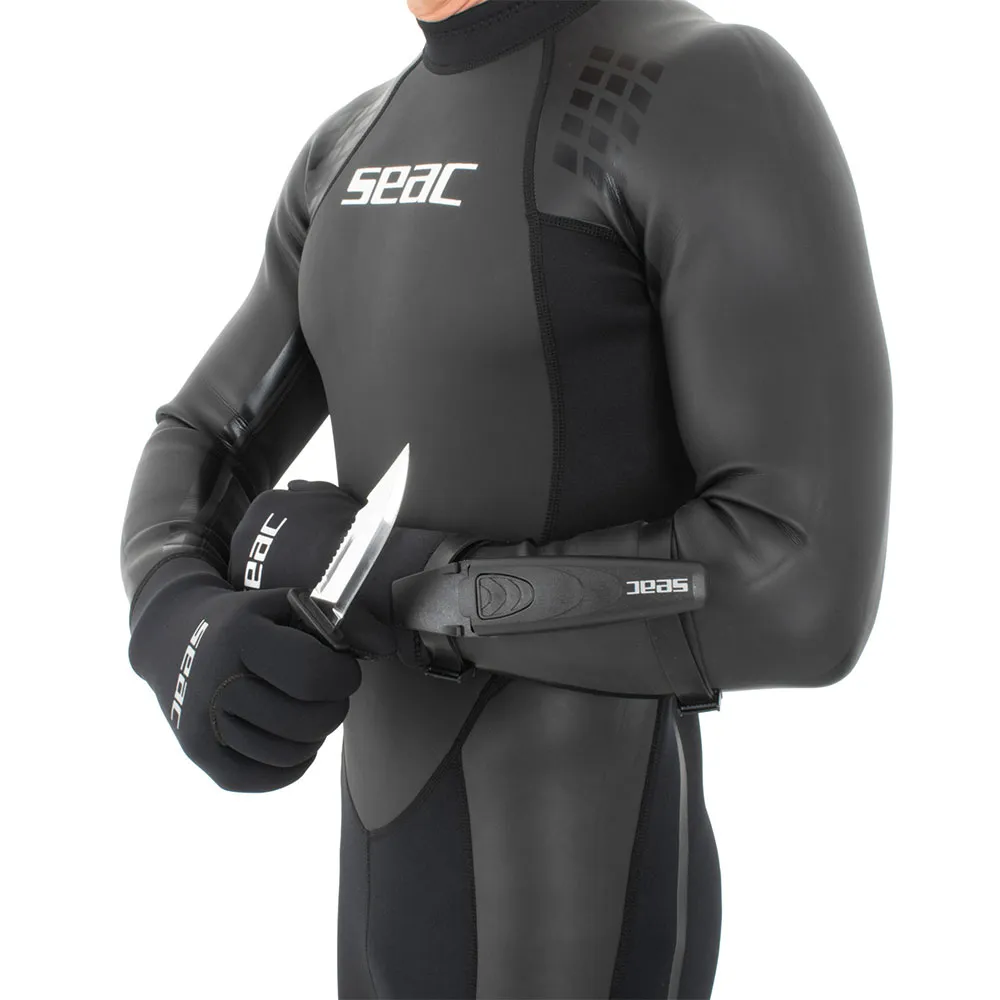 Signalez vos binômes de plongée en tapant ! Le couteau SEACSUB Hammer est doté d´un marteau unique en acier inoxydable sur son manche, parfait pour attirer l´attention sous l´eau. Ce poignard fonctionnel de 25 cm est doté d´une lame de 12 cm en acier inoxydable 420 trempé, avec un tranchant droit et un tranchant dentelé, ainsi qu´un coupe-fil. Sa poignée en caoutchouc antidérapante assure une prise en main sûre, avec ou sans gants. Le fourreau réversible avec des sangles incluses permet un montage polyvalent. Un outil de sécurité essentiel pour la plongée sous-marine et un excellent compagnon pour la chasse sous-marine