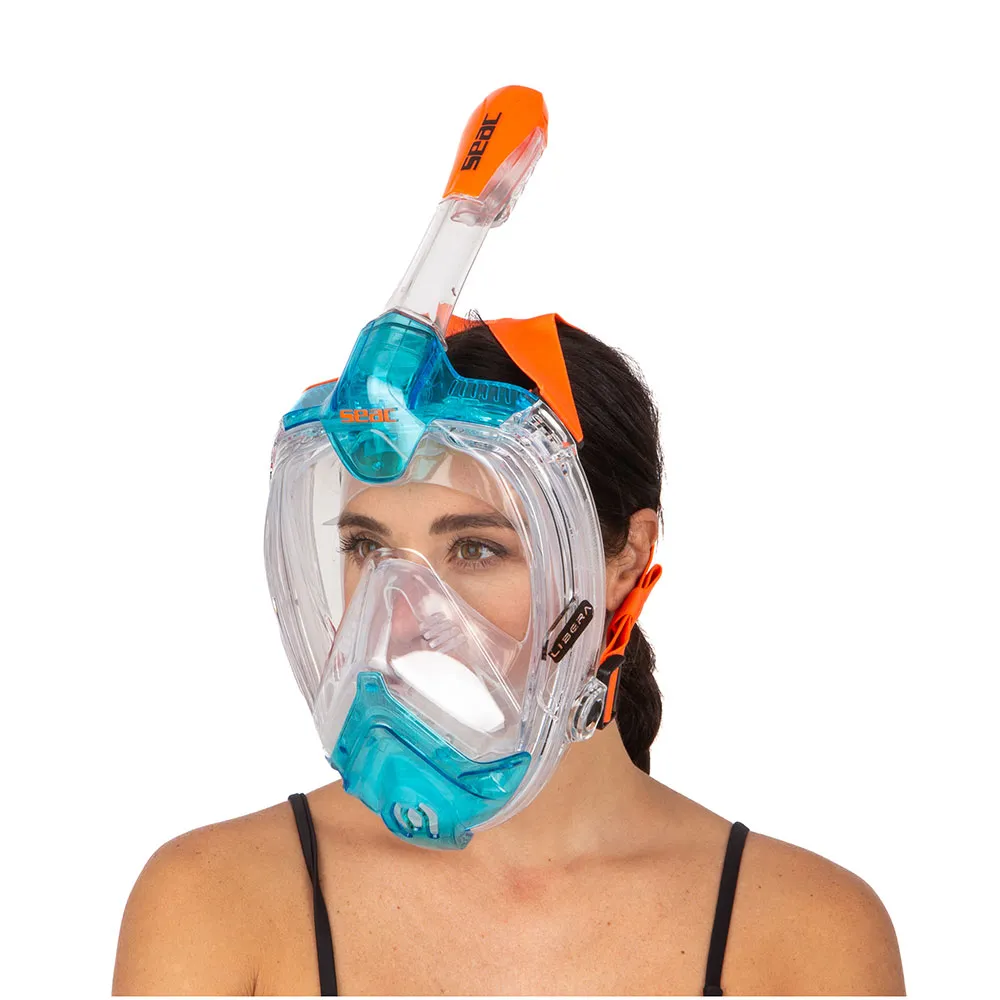 Les couleurs et les lignes du Seac Libera en font un masque intégral particulièrement séduisant, parfait pour ceux qui recherchent un maximum de confort et de sécurité en snorkeling sans sacrifier le style.