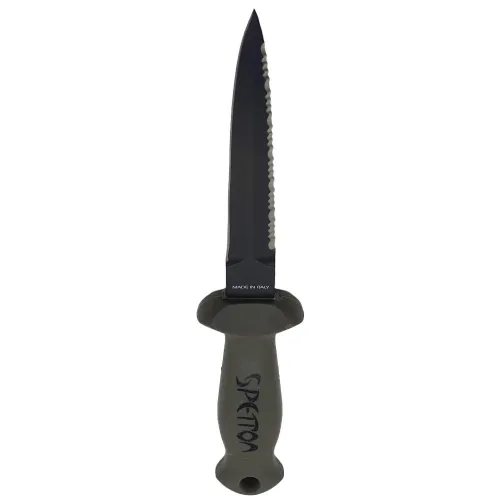 Loué pour son tranchant exceptionnel, ce couteau de pêche et de plongée est doté d´un manche confortable pour une bonne prise en main. La lame se verrouille solidement dans son étui et est fournie avec des sangles. Son design étroit de stylet à double tranchant comprend un côté dentelé, ce qui en fait un outil multifonctionnel efficace pour couper les cordes et les filets. Un poignard idéal pour la pêche sous-marine.