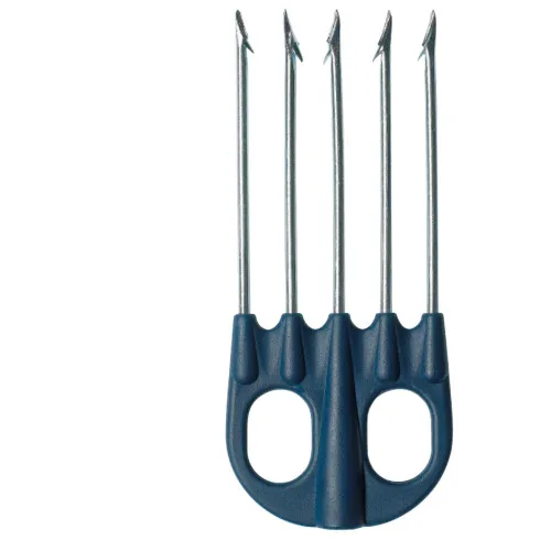 Ce trident de haute qualité est méticuleusement fabriqué à partir d´acier inoxydable (Inox) de première qualité, garantissant une résistance à la corrosion durable et un tranchant inébranlable. Les cinq pointes plates, affûtées de manière experte, maximisent la pénétration et minimisent le glissement du poisson, augmentant ainsi vos chances de succès à la chasse. La conception plate des dents réduit également la traînée dans l´eau, permettant des tirs plus rapides et plus précis. Cela se traduit par une récolte plus éthique et plus humaine, minimisant la souffrance et assurant une mort rapide et propre.