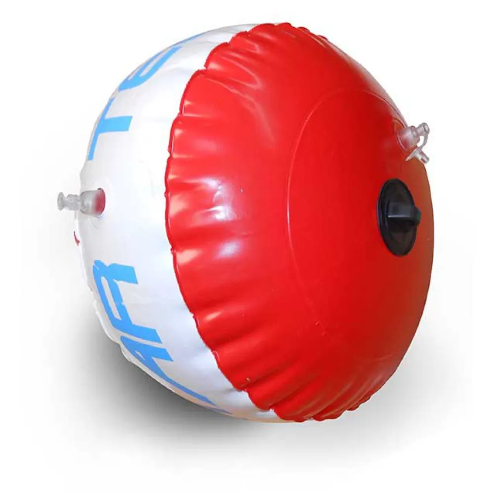 Bouée de signalisation rouge et blanche avec pavillon de plongée gonflable intégré.