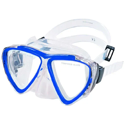 Maschera bi-oculare con morbido facciale in silicone liquido per comfort e tenuta sicura.