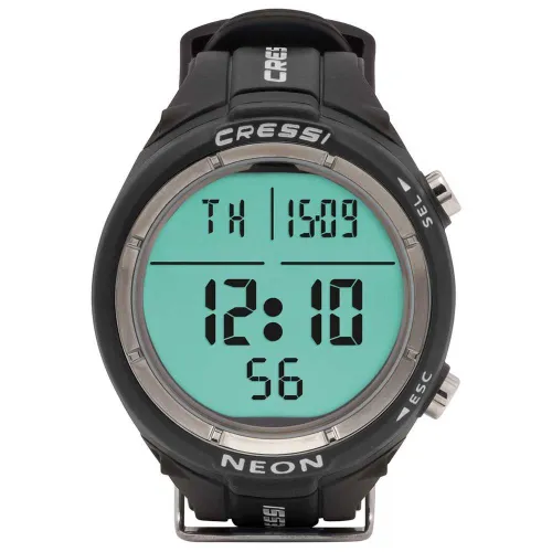 Dopo il successo di Leonardo, Giotto, Newton, Drake, Goa e Cartesio, NEON è il settimo progetto progettato, sviluppato e prodotto in Italia al 100% dalla sua controllata Cressi Elettronica.NEON ha un diametro di soli 48 mm e un display di 37 mm ad alto contrasto.È un computer-orologio per immersioni scuba/apnea dalle dimensioni estremamente ridotte.È anche uno strumento ideale per altre attività sott’acqua, grazie alla possibilità di disattivare le funzioni “dive” per evitare inutili allarmi durante lo snorkeling o il nuoto.Il display è costituito da vetro minerale e la cassa è robusta con pulsanti in acciaio per una resistenza sott’acqua fino a 120 m. Cinturino in gomma TPU con fibbia in acciaio inox.