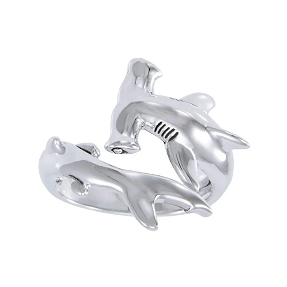 Rendi il tuo viaggio senza fine. Esprimi la tua passione con questo straordinario anello regolabile in argento sterling a doppio martello squalo creato con la squisita fattura dei gioielli DiveSilver. Adornati con questo tesoro del mare. Ti meriti il meglio!