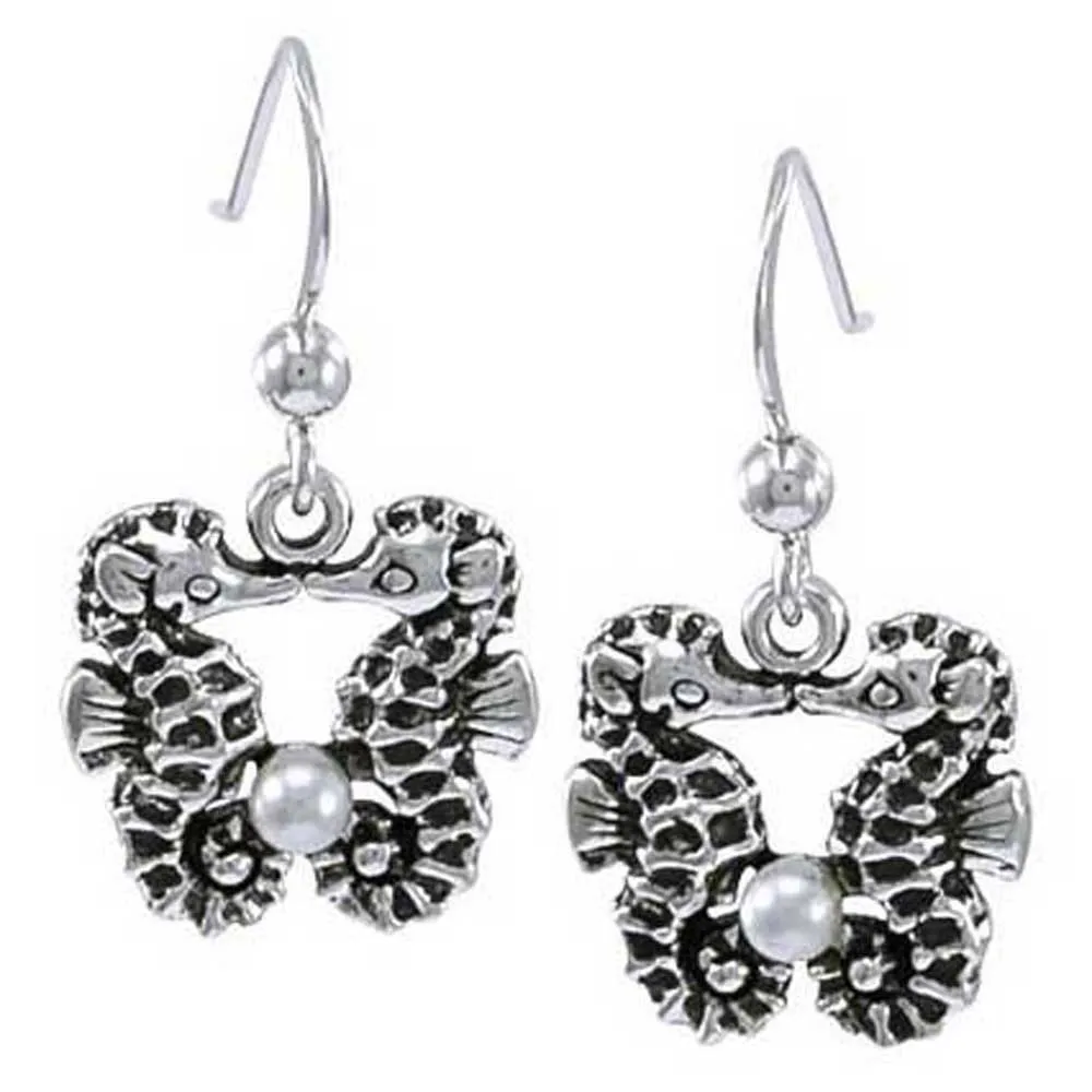Tecnologia Dive Silver Orecchini con due cavallucci marini e perla