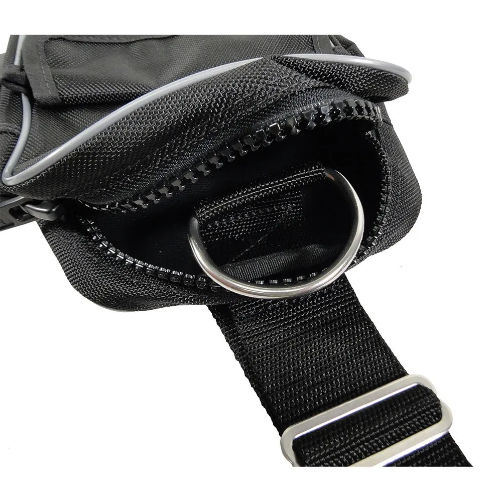 Questa sacca da immersione di alta qualità è apprezzata per i suoi materiali resistenti e la costruzione robusta. Una spaziosa tasca da coscia con grande capacità, contiene facilmente una maschera di riserva, un DSMB e un mulinello. Le caratteristiche principali includono un anello a D interno per fissare l´attrezzatura, un foro di drenaggio e cinghie regolabili per la coscia per una vestibilità confortevole su mute umide o stagne. Una soluzione di stoccaggio pratica e ben progettata per qualsiasi subacqueo. Alcuni utenti notano che le cinghie possono scivolare.