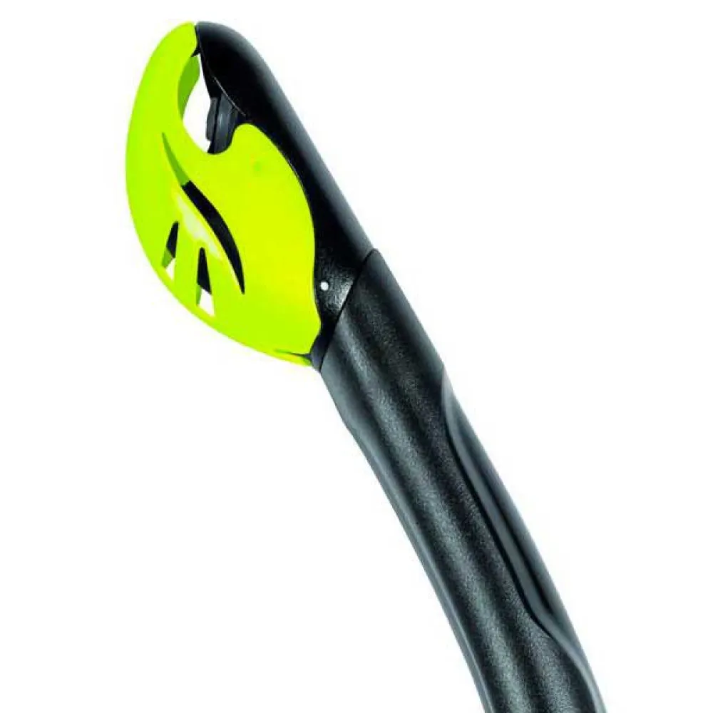 Ingegneria esclusivo della top secco (brevettato) e un boccaglio ergonomicamente corretta rendono questo snorkel ideale per le immersioni o prolungata sessioni di snorkeling. Laccostamento del piano secco 100% e una valvola di scarico nel boccaglio assicura un ambiente di respirazione completamente asciutto.